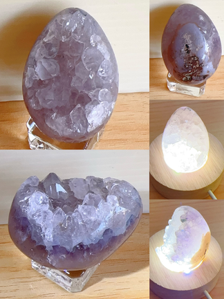 紫水晶恐龍蛋(Amethyst Egg)是天然紫水晶晶洞的特殊形態,外型如蛋,內部凹陷的晶窩宛如孕育能量的「宇宙巢穴」。在風水中,蛋形象徵「新生」與「圓滿」,而紫水晶自古被視為「智慧之石」,結合兩者的恐龍蛋,被認為能: